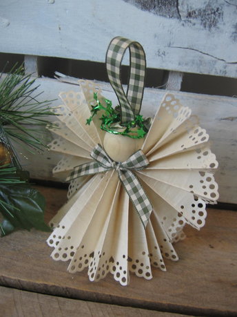 Primitive Handcrafted Brown Paper Lace Ribbon Hanging Angel Ornament