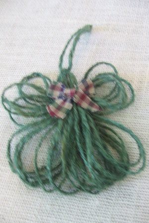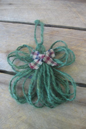Perfect for the holidays this Green Jute Twine Angel will add a special touch to your primitive or rustic holiday decorations. She was handcrafted from Jute Twine and embellished with a Green and Cranberry Homespun Bow.
